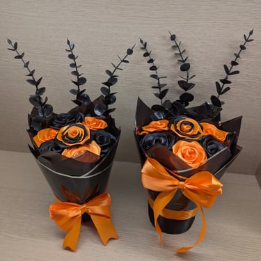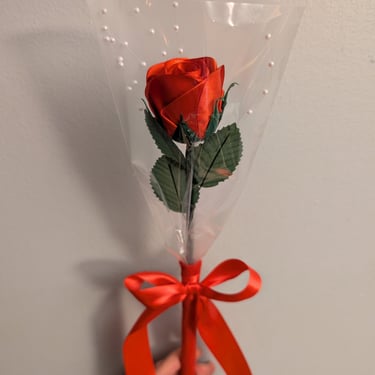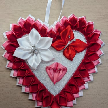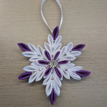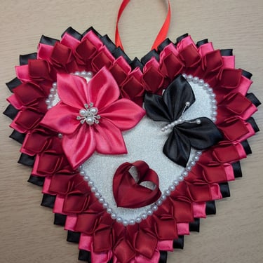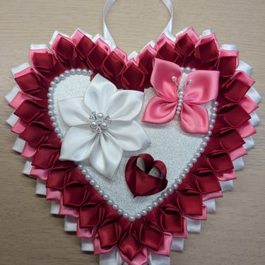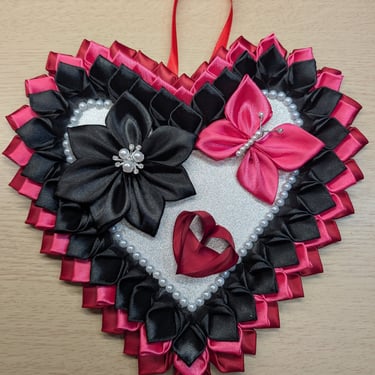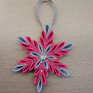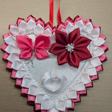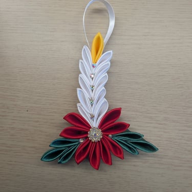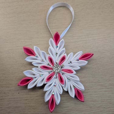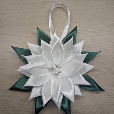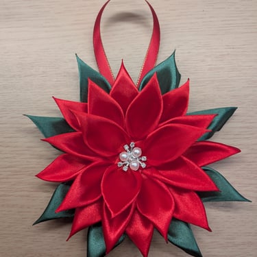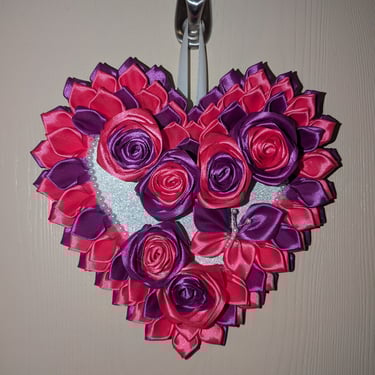 Handcrafted flowers made with double-faced satin ribbon.